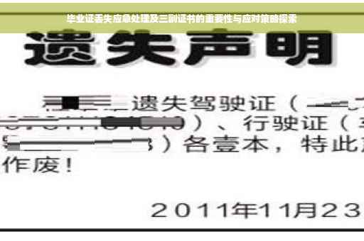 摘要:,,本文将探讨毕业证丢失的应急处理方法,并强调三副证书的重要性。首先介绍了毕业证丢失可能带来的困扰和影响,随后提出了应急处理措施,包括及时挂失、补办证明等。文章阐述了三副证书(成绩单、学籍证明等)在替代丢失毕业证过程中的关键作用,并给出了应对策略,如妥善保管重要文件备份、提高证件意识等。本文旨在帮助读者有效应对毕业证丢失问题,并重视三副证书的作用。