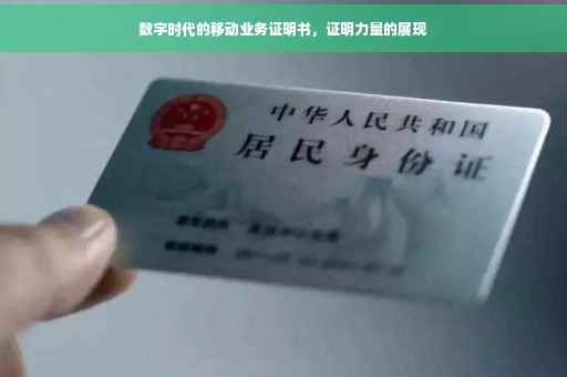 随着科技的飞速发展,移动通信已成为我们日常生活中不可或缺的一部分,在这个数字化时代,移动业务的普及与重要性愈发显现,本文将深入探讨移动业务证明书的作用、意义及其在当代社会中的应用,带您领略数字证明的力量。