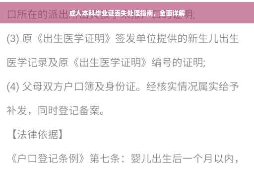 对于许多已经步入社会的成年人来说,本科毕业证不仅是学业完成的证明,更是求职、晋升的必备证件,有时候意外情况会发生,比如毕业证不慎丢失,当您的成人本科毕业证丢失时,应该如何应对呢?本文将为您提供详细的解决方案。