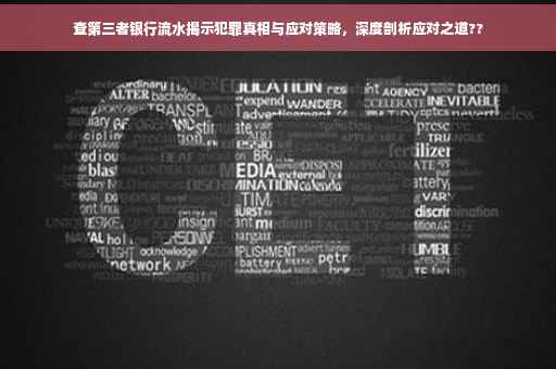 摘要:通过查第三者银行流水,揭露犯罪背后的真相,这是一种有效的调查手段。面对犯罪行为,我们应该采取积极的应对措施,包括加强监管、完善法律制度、提高公众的法律意识等。才能更好地保护个人和组织的合法权益,维护社会的和谐稳定。