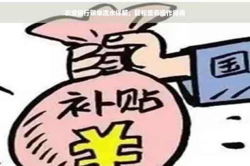 摘要:本文将详细介绍如何通过农业银行账单查看流水,提供一步步操作指南。读者将了解到如何轻松登录银行官网或手机银行应用,进入个人账户,查看账单流水,包括收入与支出明细。本文旨在帮助用户便捷地管理个人财务,了解账户动态。