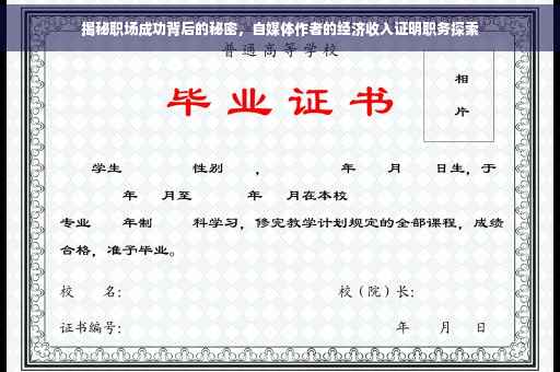 随着社会的不断发展,越来越多的人开始追求更高的职业地位和更好的生活质量,而经济收入证明职务作为职场成功的重要标志之一,更是备受关注,本文将深入探讨经济收入证明职务的内涵、重要性以及实现方式,希望能为广大职场人士提供一些有益的参考。