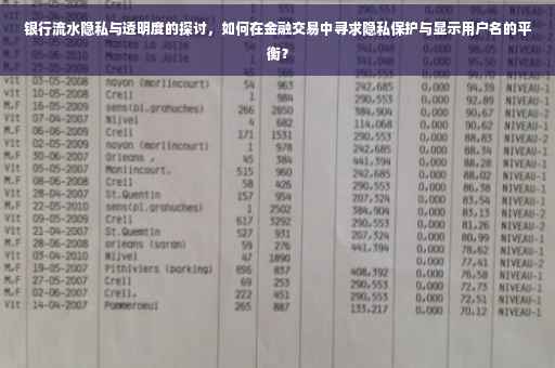 随着数字化时代的到来,银行业务日益普及,银行流水作为个人经济活动的重要记录,常常成为诸多事务的参考依据,关于银行流水是否应该显示用户名这一问题,引发了公众对于个人隐私保护与金融透明的讨论,本文将围绕这一主题展开讨论,探究二者之间的平衡。