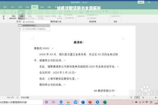 摘要:本文将详细介绍成都诊断证明书的相关内容。通过本文,读者可以了解到诊断证明书的基本格式、内容要素以及其在医疗领域的重要性。文章将重点强调诊断证明书在疾病诊断、治疗及后续医疗纠纷处理中的关键作用,并简要介绍成都市医疗诊断证明书的相关规定。