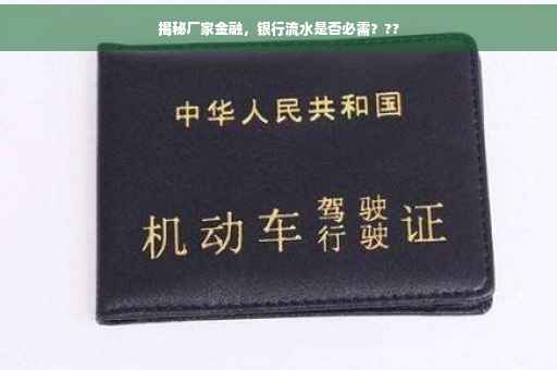 随着金融行业的快速发展,购车方式也日趋多样化,在众多购车方式中,厂家金融因其灵活便捷的贷款方式受到越来越多消费者的关注,许多消费者在选择厂家金融时,对于申请贷款所需材料存在诸多疑问,其中最为关注的问题便是是否需要提供银行流水,本文将对这一问题进行深入剖析,帮助消费者更好地了解厂家金融,以便做出更为明智的选择。