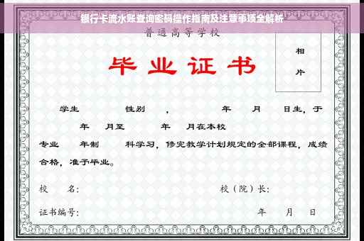 摘要:关于银行卡查流水账密码的操作,用户需先掌握操作指南及注意事项。流程包括登录银行官网、进入账户管理页面、选择流水账查询功能、输入密码进行查询。注意事项包括确保密码安全、查询时间段的选择、保护个人信息等。在遵循正确步骤和注意事项的前提下,用户可以轻松查询银行卡流水账。