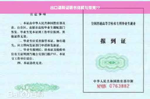 摘要:本文将详细介绍出口退税证明书的相关知识。出口退税是国家为鼓励出口贸易而采取的一种措施,通过退还出口货物已缴纳的增值税等间接税,提高出口货物的竞争力。本文将介绍出口退税证明书的定义、作用、申请流程、注意事项等方面,帮助读者更好地了解和使用出口退税政策。