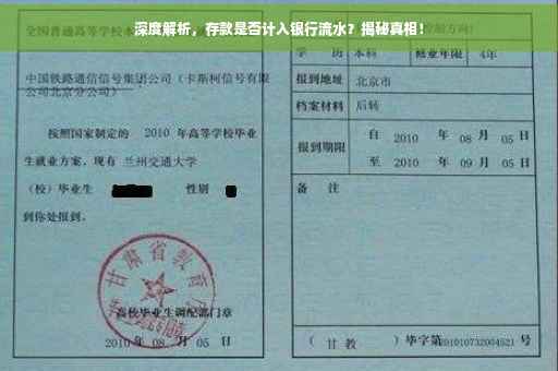 摘要:本文将深度解析存款是否计入银行流水。文章将探讨存款在银行流水中的定义和重要性,解释存款如何影响个人和企业的财务状况。通过本文,读者将了解存款在银行流水中的具体作用,以及如何正确管理和利用存款以提高银行流水的健康程度。对于关注个人和企业财务健康的人来说,本文提供了有价值的见解和建议。