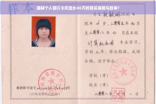 个人银行卡月流水四十万是一个引人注目的指标,背后可能隐藏着许多故事和真相,在追求高流水的过程中,务必确保合法合规、关注风险并遵守税务法规。