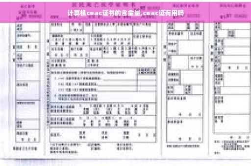 当然有用了! 国家信息化计算机教育认证(CEAC)证书 CEAC认证证书是信息产业部向从业人员颁发的信息技术专业标准证书。具有广泛的认可度和专业权威性,代表了当今信息技术应用专业资格认证的国家标准。CEAC认证证书将陆续成为信息产业系统和各地方政府主管部门,对信息技术从业人员素质考核的主要参考因素,并会逐渐演变为对所有人员从业的基本要求