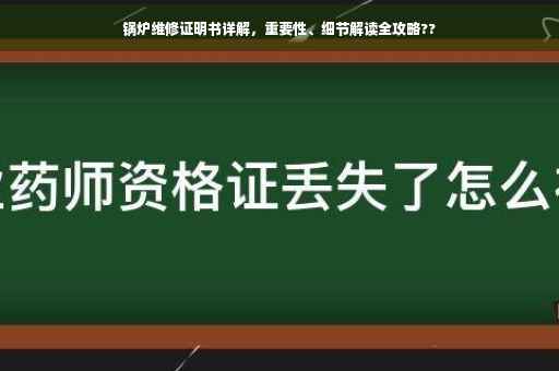 在当今社会,锅炉作为重要的热能设备,在工业和供暖领域扮演着举足轻重的角色,随着其长时间运行,维修与保养工作显得至关重要,为了证明锅炉维修的质量与安全性,锅炉维修认证书应运而生,这份文件不仅保障了锅炉的安全运行,还维护了企业及个人的合法权益,本文将全面解析锅炉维修认证书的内容及其重要性。