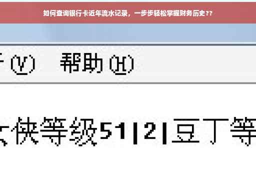 在现代社会,银行卡已成为我们日常生活中不可或缺的支付工具,随着使用频率的增加,了解银行卡的流水记录变得尤为重要,本文将详细介绍如何通过简单几步查询银行卡的近年流水记录,助你轻松掌握个人财务状况。