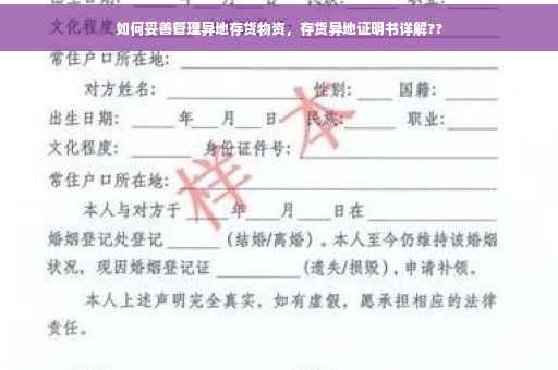 随着企业规模的扩大和业务的不断拓展,异地存储物资的需求逐渐增加,为了应对市场需求和物流运输的挑战,企业需要在不同的地方设立存货仓库,对异地存货的管理与证明显得尤为重要,本文将详细介绍存货异地证明书的作用、内容要点及实际操作中的注意事项,以帮助企业更好地管理和证明异地库存物资。