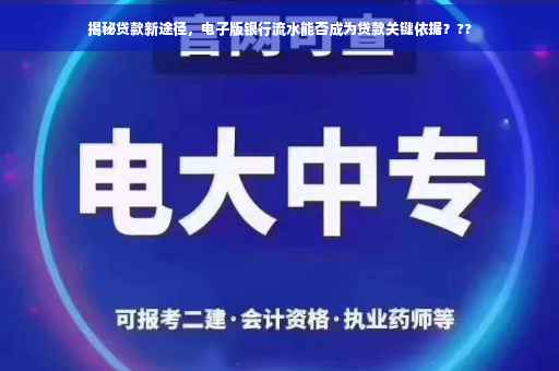 随着科技的飞速发展,银行业务逐渐电子化,许多传统的业务流程也开始向数字化转型,电子版银行流水作为银行业务数字化的产物,其便捷性和高效性备受瞩目,电子版银行流水能否用于贷款呢?本文将围绕这一问题展开探讨,带您了解电子版银行流水的贷款相关事项。