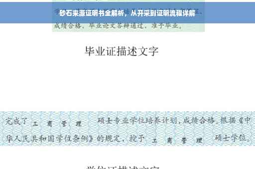 摘要:砂石来源证明书是对砂石开采、加工、运输等全过程的重要证明文件。本文详细介绍了砂石来源证明书的生成过程,包括从开采到证明的每个环节。通过规范的流程,确保砂石来源的合法性和质量可靠性,为工程建设提供有力保障。