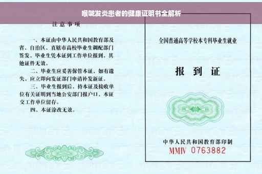 喉咙发炎患者健康证明书是一份重要的医疗文件,用于证明患者的健康状况,在办理健康证明书时,患者需提供医生的诊断证明、治疗记录等相关资料,健康证明书不仅有助于患者了解自己的健康状况,还有助于保障患者的合法权益,如在工作或学习中的健康证明需求。