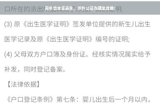 在全球化的浪潮下,越来越多的人选择走出国门,探索更广阔的世界,留学或旅行成为他们实现梦想的方式之一,在办理留学或旅行手续时,有时会遇到需要提供涉外公证的情况,特别是高中毕业证作为重要的学历证明文件,在办理涉外公证时显得尤为重要,如果不幸,你的高中毕业证丢失了,那么应该如何应对呢?接下来的内容将为你探讨这一问题。