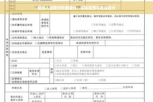 摘要:,,继续人证明书在多个领域具有重要性,其实用性广泛。该证明书主要用于确认个人身份及继承权利,确保遗产的合法传承。在实际应用中,继续人证明书在财产继承、法律诉讼、公证业务等方面发挥关键作用,有效保障个人权益和社会秩序。继续人证明书的存在有助于简化手续、提高效率,促进社会的公正与和谐。