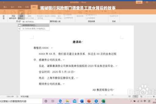 摘要:银行风险部门近期对员工的流水进行调查,旨在揭示背后可能存在的风险故事。此次调查重点关注员工账户交易记录,以评估可能存在的内部风险隐患。此举有助于银行加强内部管理,确保业务稳健发展。通过调查,银行能够及时发现并处理潜在风险,保障金融系统的安全与稳定。