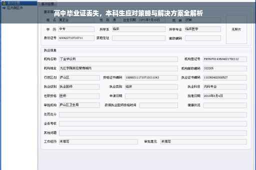 对于每位高中生来说,高中毕业证是学业生涯的重要里程碑,它不仅是努力的见证,更是通往大学和未来职业道路的通行证,有时由于各种原因,一些本科生可能会遗失自己的高中毕业证,面对这样的情况,许多学生可能会感到焦虑和无助,当遭遇这样的不幸时,我们该如何应对呢?下面为大家提供详尽的应对策略及解决方案。
