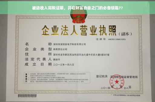 被动收入完税证明是开启财富自由之门的必备钥匙。通过合法合规的税收缴纳,证明个人收入来源稳定且具备可持续性,是实现财务独立的重要步骤。拥有完税证明,将为您在投资、理财等方面提供更多机会和信任度,让您更自由地掌握自己的财务未来。