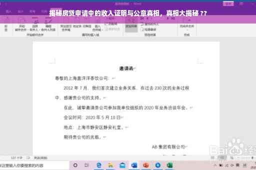 摘要:本文将揭示房贷申请过程中收入证明与公章的重要性及其真相。深入了解收入证明的作用,包括证明申请人具备偿还贷款的能力。本文将探讨公章在收入证明中的关键作用,以及申请人应如何确保收入证明的真实性和有效性。阅读本文,将帮助您避免在房贷申请过程中因不了解收入证明与公章的重要性而陷入误区。