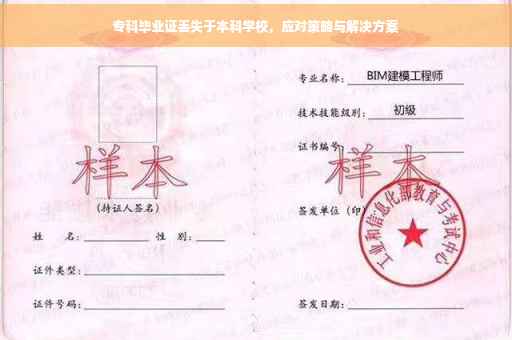 摘要:针对专科毕业证在本科学校丢失的情况,应对策略包括及时挂失并报案,以便追踪证件下落。联系学校相关部门,提供相关证明文件以获取复印件或证明文件。保存好相关证明材料,如身份证、学生证等,以备不时之需。最终解决方案包括补办专科毕业证,确保个人学历认证不受影响。