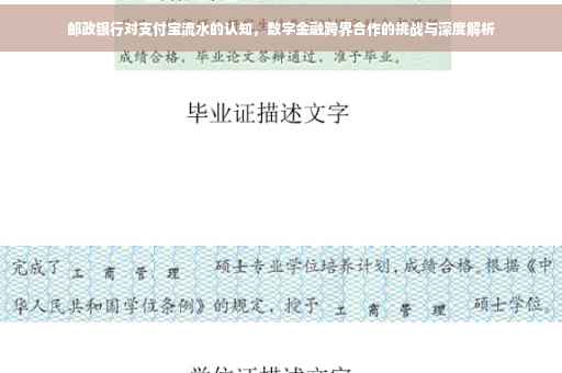 随着科技的飞速发展和互联网的普及,人们的支付方式发生了翻天覆地的变化,从传统的现金交易到银行卡支付,再到如今的移动支付,支付宝等电子支付方式已经成为人们日常生活中不可或缺的一部分,在这样的支付变革中,邮政银行与支付宝之间的合作与认知程度,尤其是支付宝流水在邮政银行业务中的认可度,成为许多人关注的焦点。