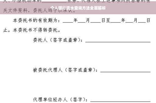 成功查询后,可领取纸质版的个人银行流水账单,柜台查询可为用户提供更加详细、全面的流水信息,且支持定制查询时间范围,但柜台查询可能需要排队等候,耗时较长,建议用户优先选择线上查询方式,六、电话银行查询除了以上几种方式外,部分银行还支持通过电话银行查询个人银行流水,用户可以拨打银行客服热线,根据语音提示输入相关信息进行查询,电话银行查询方便快捷,但可能无法查询到所有明细信息,七、注意事项1. 保护个人信息在进行个人银行流水查询时,请务必保护好个人信息,如银行卡号、密码等,避免在不安全的网络环境下进行网银操作,以防信息泄露,2. 查询时间范围大部分银行支持近半年的流水查询,超过此时间范围的流水可能需要前往柜台办理查询,3. 流水真实性如有疑问流水记录的真实性,请及时向银行咨询或前往柜台核实,八、总结本文详细介绍了当前个人银行流水查询的四种主要方法:网上银行查询、手机银行查询、ATM机查询以及柜台查询,还介绍了电话银行查询方式及注意事项,希望本文能帮助广大用户轻松掌握个人银行流水查询技巧,实现便捷、高效的个人银行流水管理,随着银行业务的不断发展和创新,未来还将有更多便捷的查询方式供用户选择,九、拓展知识随着互联网技术的发展,部分银行开始推出更加智能化的个人银行流水管理方式,部分银行推出了电子账单服务,用户可通过手机APP或网银订阅电子账单,自动接收每月的流水账单,还有一些第三方平台提供了个人银行账户管理功能,可帮助用户实现跨行流水查询、账单管理等功能,这些新兴技术将进一步提高个人银行流水管理的便捷性和效率性,随着银行业务的不断创新和发展,个人银行流水查询方式将越来越丰富、便捷,用户可根据自身需求和习惯选择合适的查询方式,实现个人银行流水的轻松管理,十、附录(附录内容可根据实际情况添加)1. 银行客服热线列表2. 各银行手机APP下载链接3. 个人银行流水查询常见问题解答4. 相关政策法规及注意事项以上为本文关于当前个人银行流水查询方法的全部内容,希望本文能为您提供有益的参考和帮助,如有更多疑问或需求,请随时咨询银行工作人员或专业人士。
