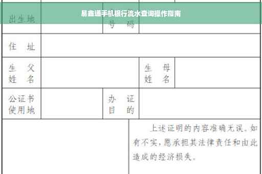 通过本文的介绍,您已经掌握了易鑫通手机银行流水查询的方法,希望您在日后的使用过程中能更加便捷地管理财务,享受便捷的金融服务,请注意账户安全,保障自己的合法权益,如在使用易鑫通手机银行过程中遇到任何问题,欢迎联系我们的客服人员,我们将竭诚为您服务,祝您使用愉快!文章字数可根据实际情况调整并丰富内容以满足具体需求和要求。