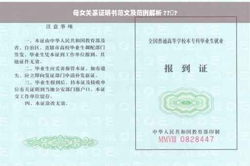 摘要:本证明书是一份母女关系的证明文件范本,用于证明某人与母亲之间的亲属关系。该证明书包含了证明双方的姓名、身份证号等基本信息,并声明双方的关系及亲属关系的真实性。这份证明文件通常用于办理相关手续、申请等场合,以证明母女关系的存在。