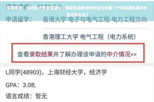面对十年前高中毕业证遗失的问题,不必过于焦虑。实用指南助你找回生活秩序。前往原毕业学校或当地教育部门查询档案,确认毕业证遗失情况。按流程提交补办申请,准备相关证明材料,如身份证、学历证明等。耐心等待审核并领取新的毕业证。整个过程需保持耐心和积极配合,以便顺利找回遗失的毕业证,重新步入正常生活秩序。