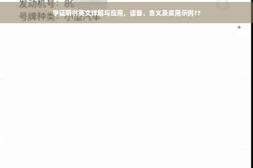 摘要:本文介绍了学证明书的英文详解及实际应用,包括学证明书的定义、作用、格式和撰写要点。本文还探讨了学证明书的英文读音及注意事项。通过阅读本文,读者可以了解到如何正确撰写学证明书,并在实际应用中运用所学知识,从而更好地发挥学证明书的作用。,,关键词:学证明书、英文详解、实际应用、英文读音。