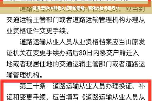 在求职过程中,许多求职者都曾遭遇过与人力资源(HR)部门的各种交流挑战,关于收入证明的问题常常成为讨论的焦点,有时,即使你提供了完整的收入证明文件,仍可能面临HR的质疑,面对这种情况,了解如何应对变得尤为重要,本文将为你解析面对HR质疑收入证明时应该如何应对,帮助你更好地展现自己的价值。