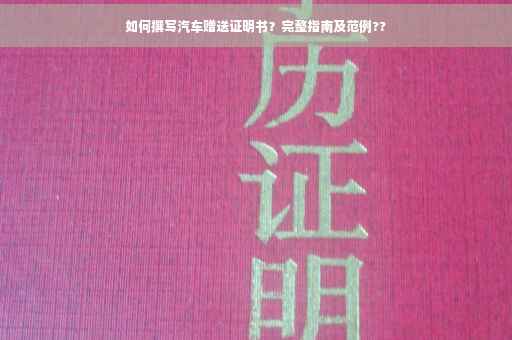 摘要:,,本文介绍了如何撰写汽车赠送证明书。内容包括证书的基本格式、需要包含的关键信息,如赠送人的姓名、受赠人的姓名、汽车的品牌型号、赠送日期等。提醒撰写者注意证明书的真实性和法律效应,确保信息的准确性和完整性。