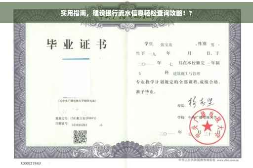 摘要:想要轻松查询建设银行流水信息,不再求人?只需掌握简单步骤即可实现!通过网上银行或手机银行,登录个人账号,进入账户查询页面,选择流水信息查询选项,即可查看近期交易记录。也可前往银行柜台,携带有效身份证件及银行卡,向工作人员申请查询流水信息。本实用指南助你轻松掌握查询技巧,省时省力!