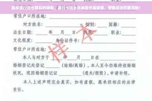 摘要:,,本文揭露了银行流水账单背后的秘密,并探讨了如何合法合规地使用银行卡,避免通过非法手段制造虚假流水账单。提醒公众,任何试图通过欺诈手段让银行卡显示虚假流水的行为都是违法的,并可能导致严重后果。呼吁大家遵守法律法规,正确使用银行卡。