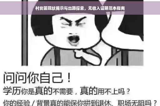 摘要:本篇内容主要关于村证明无收入的写作范本,同时揭示了农村贫困现状的挑战与出路。文中通过简洁明了的语言,概述了如何撰写村证明无收入的证明,并分析了农村贫困的严峻形势。文章指出,农村贫困问题需要通过探索有效的途径和策略来解决,以实现农村经济的可持续发展。