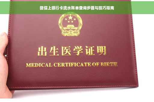 摘要:通过微信查询银行卡流水的步骤包括打开微信,进入支付界面,选择钱包,点击账单选项,选择相应银行卡并输入支付密码验证身份,即可查看流水账单。技巧包括确保微信版本更新,保持账户安全,注意保护个人隐私。通过遵循这些步骤和技巧,可轻松在微信上查询银行卡流水账单。