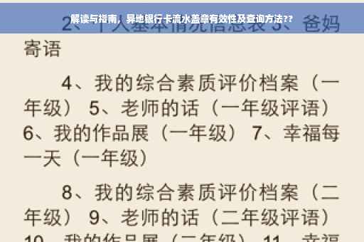 在如今高度数字化的时代,银行业务已经跨越地域限制,越来越多的人使用异地银行卡进行交易,随之而来的是一系列关于异地银行业务的问题,其中之一便是异地银行卡流水盖章的有效性,本文将对此问题进行详细解读,帮助广大读者更好地了解相关政策和实际操作流程。
