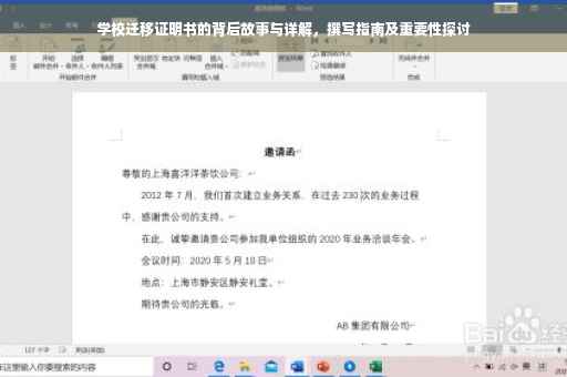 摘要:本文将详细介绍学校迁移证明书的撰写过程及其重要性。这份文件对于学校和学生而言具有关键作用,能够证明学校的地理位置变更情况。本文将探讨如何撰写学校迁移证明书,包括需要包含的关键信息和注意事项。本文将简要介绍该文件背后的故事和重要性,帮助读者更好地理解其背后的含义和用途。