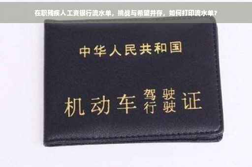 随着社会的进步和企业文化的日益包容,越来越多的残疾人勇敢地跨出家门,踏入职场,他们凭借坚韧不拔的毅力和努力,在职场上展现出了独特的价值,工资银行流水单作为个人收入的重要证明,对于在职残疾人来说具有特殊的意义,本文将深入探讨在职残疾人在工资银行流水单方面所面临的挑战、其重要性以及应对方法。