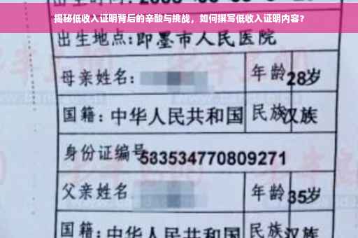 在当今社会,低收入证明已经成为一些人生活中不可或缺的一部分,它不仅仅是一张纸质的证明,更是背后隐藏着无数辛酸与挑战的见证,本文将深入探讨低收入证明的内容及其背后的故事,以期引起社会各界对这一群体的关注和帮助。