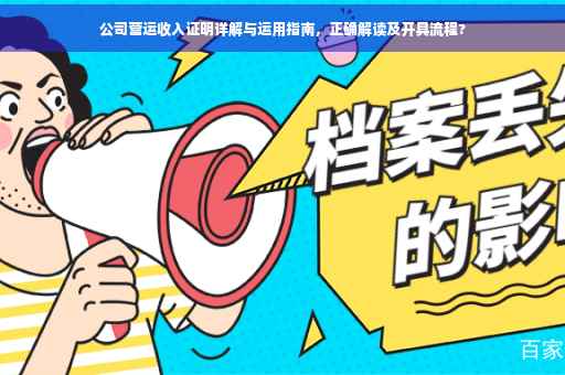 摘要:本文将详细介绍公司营运收入证明的相关知识,包括如何正确解读和运用。文章将解释公司营运收入证明的概念和作用,以及开具该证明的具体步骤和注意事项。通过本文,读者可以了解如何有效地使用公司营运收入证明,从而为公司的发展和个人的财务管理提供有力支持。