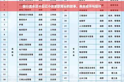 一位名叫李明(化名)的小伙子因其银行流水高达十五亿而备受瞩目,他年仅二十多岁,在金融行业拥有多年的工作经验,据悉,他在某银行任职期间凭借出色的业务能力,成功实现了银行流水的巨大增长,他重新踏入求职市场,希望能够找到一份能够充分发挥自己才能的工作。