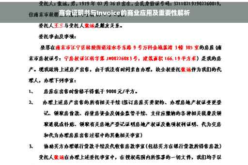 摘要:商会证明书和Invoice在商业运营中具有重要的地位和作用。商会证明文件能够证明企业的商业信誉和经营实力,有助于企业在商业圈中建立信任和声誉。而Invoice则是商业交易中不可或缺的重要文件,能够证明交易的真实性和合法性,保障买卖双方的权益。商会证明文件和Invoice的实际应用广泛,包括企业合作、贸易往来、融资贷款等方面,对于企业的成功运营和发展具有重要意义。