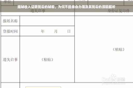 在现代社会中,收入证明已成为人们求职、贷款等场合不可或缺的一项证明材料,有时我们会遇到这样的情况:收入证明不是本人亲自办理,这其中究竟隐藏着怎样的秘密?本文将为您揭开收入证明背后的神秘面纱,探究为何不是本人亲自办理的原因。