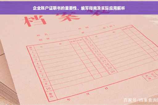 企业账户证明书在企业运营过程中具有举足轻重的地位,了解和使用企业账户证明书,有助于企业在商务合作、招投标、融资等场合更好地展示自身实力和信誉,在办理企业账户证明书时,企业应遵循相关规定和步骤,确保办理过程顺利,同时也要注意保护企业账户信息的安全,希望通过本文的介绍,广大企业和个人能更加了解和使用企业账户证明书,为企业发展带来更多便利和支持。