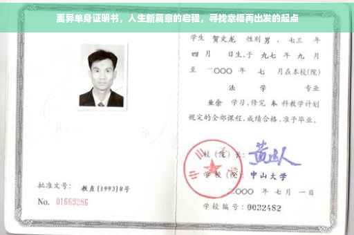 离异并不意味着人生的终结,而是一个新的开始,持有离异单身证明书的人可以借此机会重新寻找属于自己的幸福,在面临困难与挑战时,我们要勇敢面对,积极向前,努力创造更美好的生活。