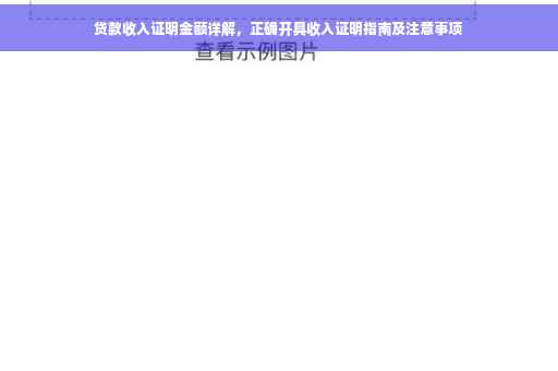 摘要:,,本文介绍了贷款收入证明金额的详细解析,包括如何正确开具收入证明及注意事项。在申请贷款时,提供准确的收入证明是非常重要的,它不仅有助于顺利获得贷款,还能避免不必要的误解和纠纷。文章指出,在填写收入证明时,应注意金额的准确性、真实性和完整性,同时提供了一些建议,以帮助借款人更好地开具收入证明。